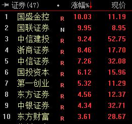 8月6日尾盤,券商板塊大幅走高并帶動大盤拉升。截至收盤,國盛金控(行情002670,診股)、國聯證券(行情601456,診股)漲停,中信建投(行情601066,診股)、浙商證券(行情601878,診股)、中信證券(行情600030,診股)漲幅均逾7%。