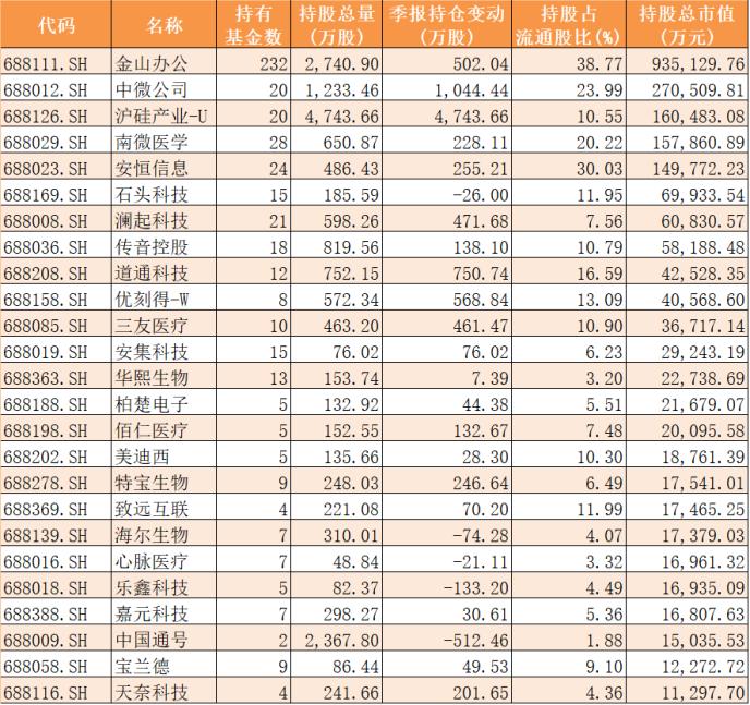 公募基金作為A股市場上的重要價值投資者,二季度重倉了哪些科創(chuàng)板個股呢?