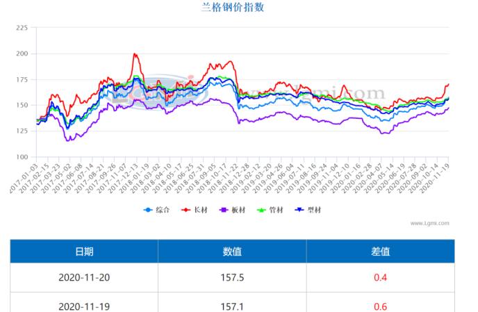 11月以來鋼材價格持續上漲 圖片來源:蘭格鋼鐵網