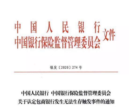 根據該《通知》,2019年5月24日,中國人民銀行、中國銀保監會對包商銀行實施接管?!锻ㄖ贩Q,在接管期間,經清產核資,確認包商銀行已嚴重資不抵債,無法生存。根據《商業銀行資本管理辦法(試行)》等規定,中國人民銀行和中國銀保監會認定包商銀行發生“無法生存觸發事件”。