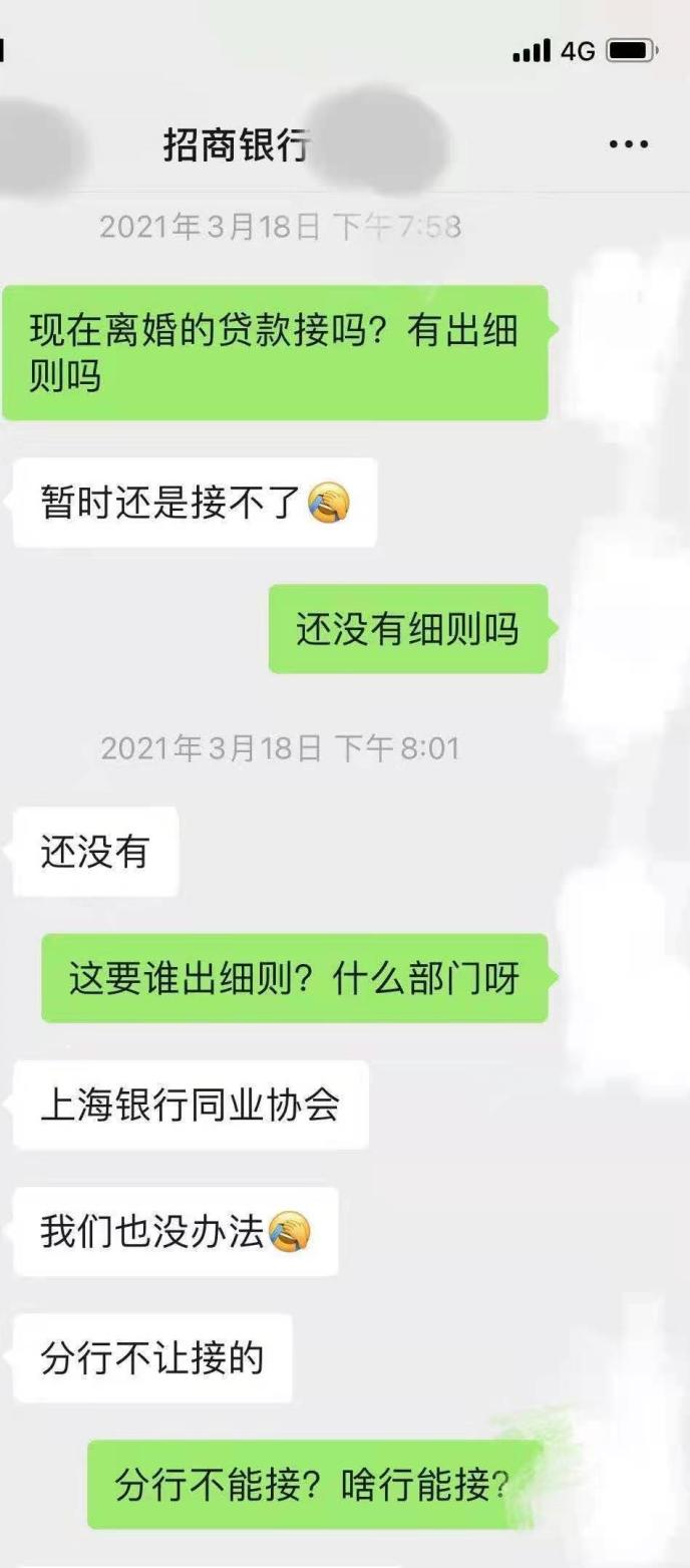 毛哲也曾碰到過類似的情況,并表示在實(shí)際操作層面上,這樣的要求也很難滿足。“浦發(fā)銀行(行情600000,診股)的客戶經(jīng)理在我追問下松口表示可能可以接,但不一定保證放款,必須還要找前夫提供資料證實(shí)真實(shí)性,比如前夫離婚后有無買房貸款。真離婚的我們早拉黑不聯(lián)系了,只有假離婚才能提供這些吧。”毛哲表示,她現(xiàn)在最壞的打算就是再拖半年,直到離婚滿3年后再去銀行辦貸款。“我沒辦法了,就只能看著房價(jià)漲,著急也沒有用”。